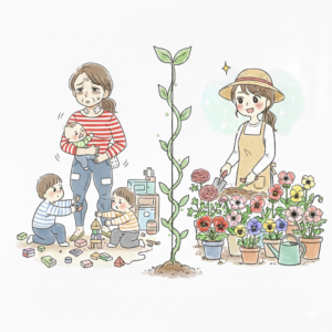 育休中とはいえ、時間は1秒も無駄にできません。 私が編み出したのは、8:50〜9:00の弾丸ガーデニングです。